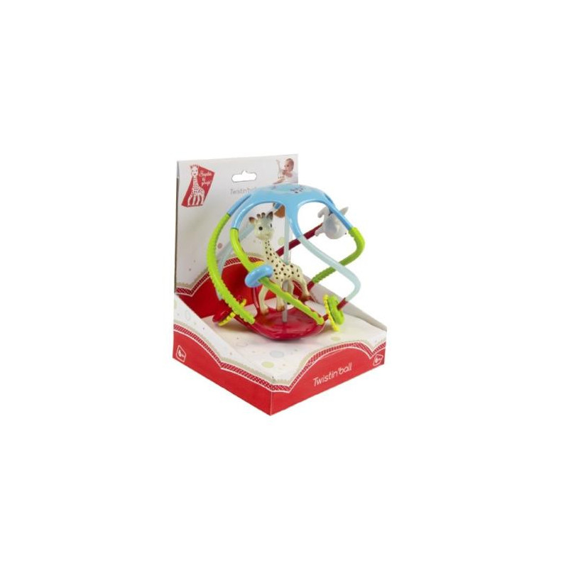 Twistin'ball est une balle colorée qui va permettre à bébé de développer sa motricité. Légère et facile à saisir grâce à ses 6 tiges, bébé s'amusera à l'agiter pour faire teinter ses billes qui vont s'entrechoquer et faire coulisser les anneaux et perles le long des tiges.La Twistin'ball possède des matières et textures variées pour développer son toucher et des couleurs vives pour stimuler sa vue. Dotée de deux anneaux en matière soft, la balle offre à bébé des parties à mordiller pour soulager ses gencives douloureuses. Diamètre : 16 cm. 6 mois et plus.