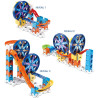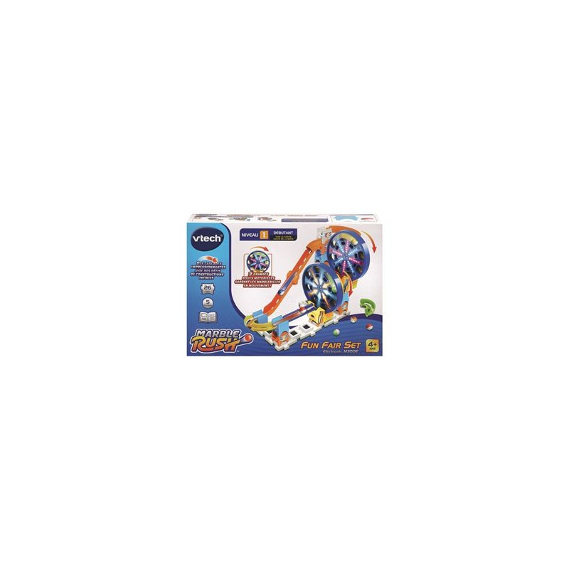 Un super circuit à sensations avec deux grandes roues motorisées ! Contient 26 pièces et 5 Marble Billes pour créer un super circuit ! Génial ! Les deux grandes roues sont dotées d’un moteur pour déplacer automatiquement les MarbleBilles ! De nombreux passages secrets, aiguillages et zones d’interactions. L’enfant développe sa motricité, sa créativité, sa logique et son imagination en créant des combinaisons à l’infini ! Compatible avec les autres sets de la gamme. Dès 4 ans.
