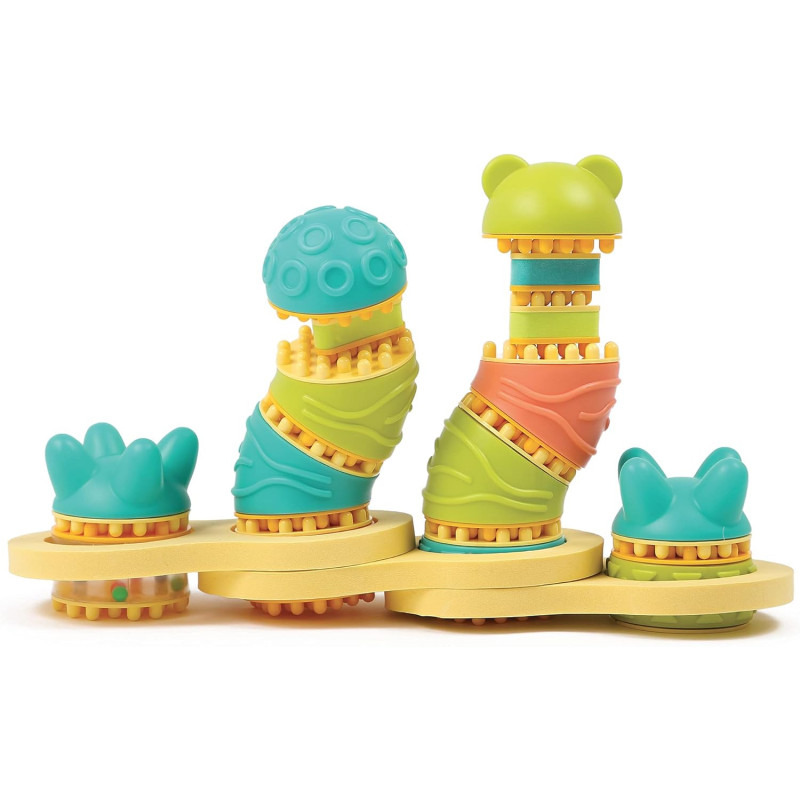 Découvre un jeu original de construction pour les tout-petits mais aussi pour les plus grands. Ce jeu évolutif capte l'attention de toute la famille et cultive l'imagination des petits curieux. Empiler, rouler, relier, balancer… Dès 10 mois.