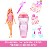 Les enfants peuvent retirer le couvercle du gobelet et en sortir les sachets surprises, puis remettre le couvercle et le percer avec la paille pour faire s’écouler du slime gluant et rose sur les glaçons. À l’intérieur se cachent une poupée Barbie articulée parfum limonade à la fraise, un chiot mou au même parfum et des accessoires sur le thème des fruits. D’autres pièces sont incluses dans les glaçons, qui s’ouvrent pour révéler une mini boisson molle et des patins à roulettes pour la poupée Barbie. Les glaçons peuvent être utilisés comme espace de rangement ou pour recréer des surprises La poupée Barbie a de longs cheveux roses, est vêtue d’un short à motif fruits et est accompagnée d’un animal de compagnie mou parfumé pour créer des aventures fruitée. Passez la tête de la poupée sous l’eau très froide pour révéler des mèches et un maquillage colorés et sous l’eau chaude pour que la poupée retrouve son apparence initiale !