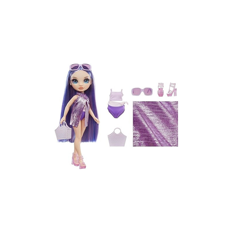 Laissez briller vos vraies couleurs ! Tout comme un arc-en-ciel, Rainbow High est une marque de jouets unique qui encourage les enfants à embrasser leur individualité. Cette collection de poupées mannequins colorées, variées et inclusives incite à la créativité dans les histoires, l'art et la personnalité, tout en restant fidèles à soi-même. REGARDEZ SUR YOUTUBE & NETFLIX : Retrouvez la série animée sur YouTube et Netflix en recherchant "Rainbow High Dolls".SWIM & STYLE : Collectionnez et jouez avec Ruby, Sunny, Skyler et Violet.
