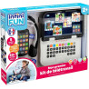 Comme papa et maman : je passe des appels avec mon téléphone, je participe à des vidéoconférences avec mon ordi et mon casque… 5 modes de jeu sur l’ordinateur et 3 modes quiz sur les lettres, les chiffres et les couleurs… Fonctionne avec 4 piles LR03 non fournies. Dès 18 mois.