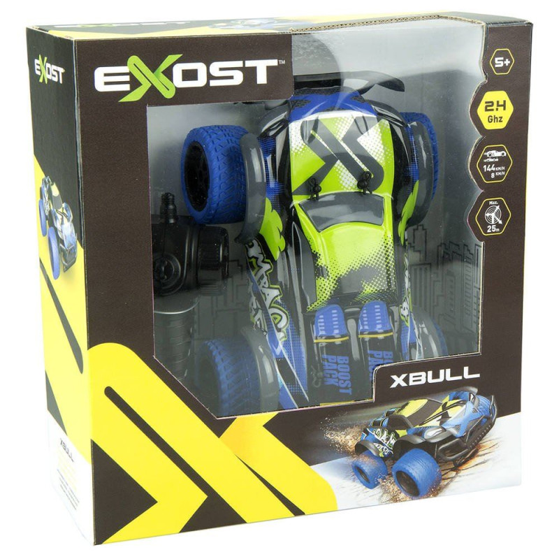 Échelle1/18 ème. Une voiture taillée pour le franchissement avec des suspensions à l’avant et à l’arrière et des pneus tout-terrain. Fonctionne avec 6 piles LR06 non fournies. Dès 5 ans.